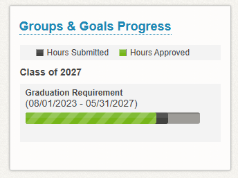 - On the left side of the x2VOL Homepage you will see a progress bar that will start to fill up in green as you complete the 30 hours of community service.