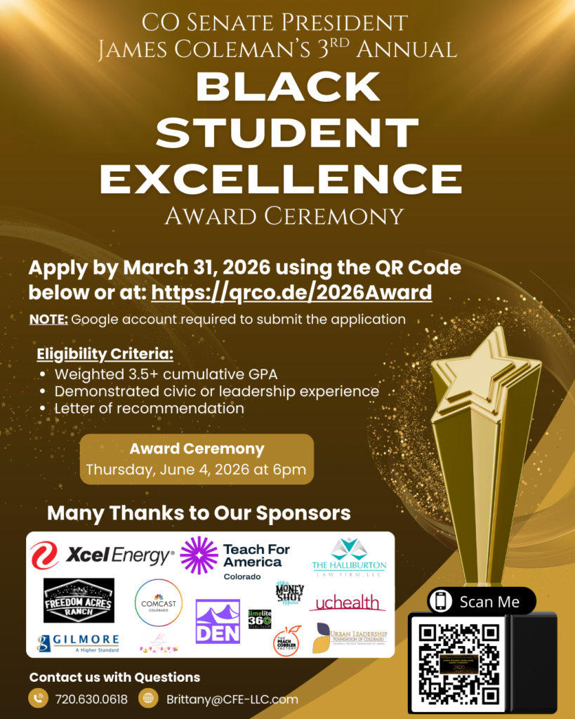 Are you a Black high schooler crushing it in class and in your community? Colorado Senate President James Coleman wants to celebrate YOU!