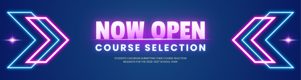 The window for the 2026–2027 course selection is officially open.Students can begin submitting their course selection requests for the 2026-2027 school year.