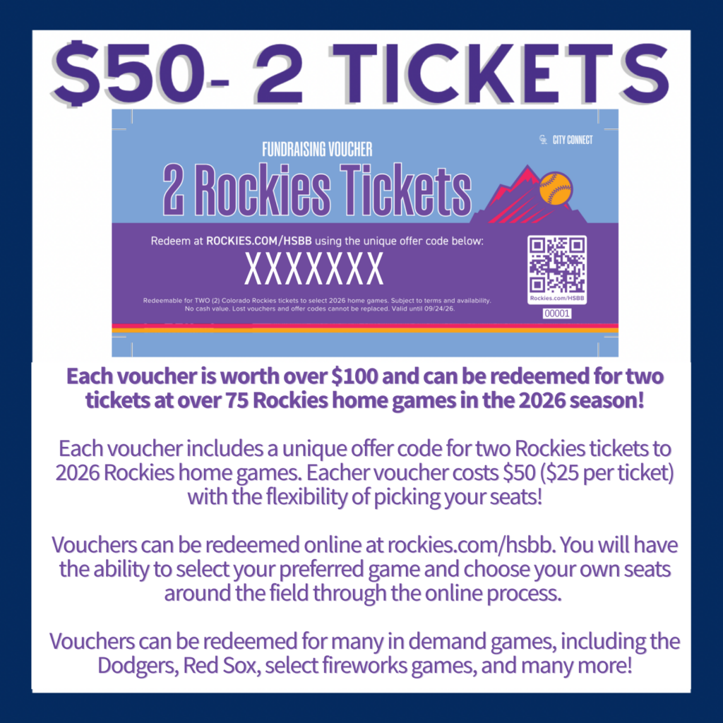 Get a great deal on baseball tickets while supporting the Class of 2026! We are selling Rockies Fundraising Vouchers that offer huge savings for the 2026 season.